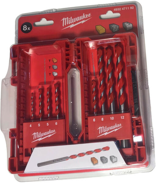 Milwaukee Betonfúrószár készlet 3 oldalas befogással, 8 részes (4-12mm)